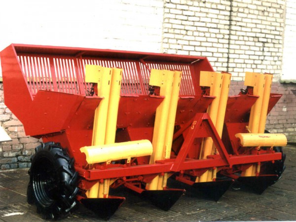 Предназначена для рядковой посадки непророщенных клубней картофеля. Картофелесажалка состоит из следующих основных узлов: рамы, опорно-приводных колес, высаживающих аппаратов, сошников, бороздозакрывателей, загрузочного бункера, редуктора изменения густоты посадки.